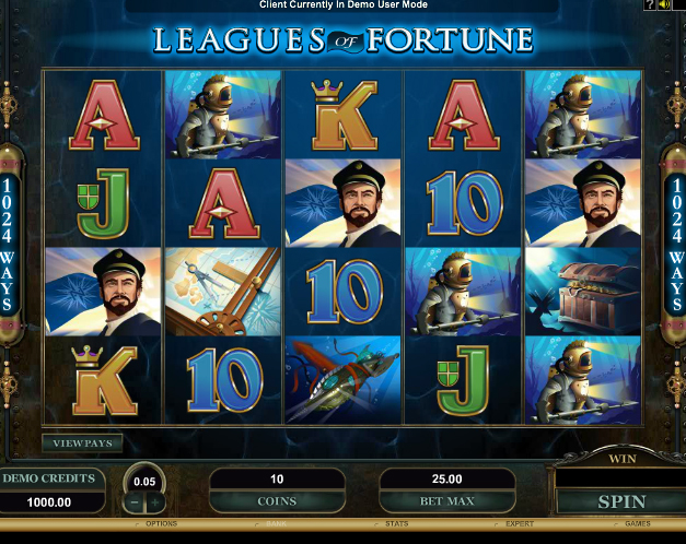 If you were a fan of the best seller 20 Thousand Leagues Under the Sea you'll definitely enjoy the latest release from Microgaming, the largest online gaming software supplier. Leagues of Fortune Video Pokies, is loosely based on the aforementioned book and features an underwater craft similar to the Nautilus, a proud captain and adventurous underwater explorer with a spear-gun as some of its symbols. A more important feature of the Leagues of Fortune Video Pokies game is that it's one of Microgaming's first online games to implement the 1024 Ways to Win payline system. What this means, is that players now stand a chance to win up to 1024 different ways, with wins awarded from left to right on adjacent winning combinations.